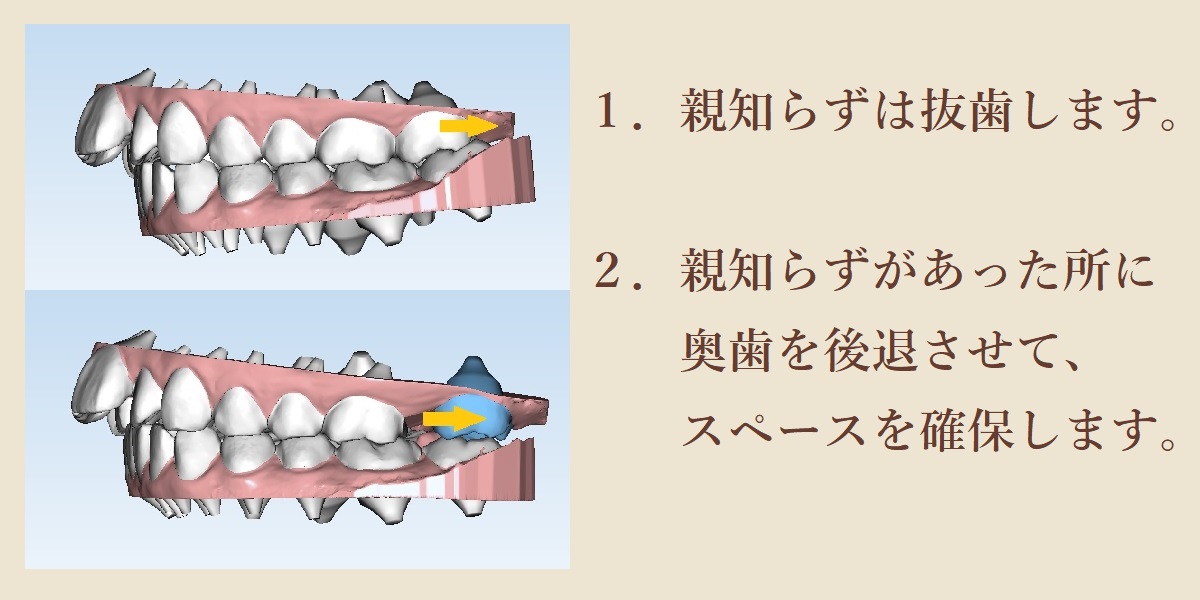 小臼歯を抜歯する代わりに、奥歯を後方に移動させて歯を並べるスペースを確保する、または前歯を下げる治療法です。