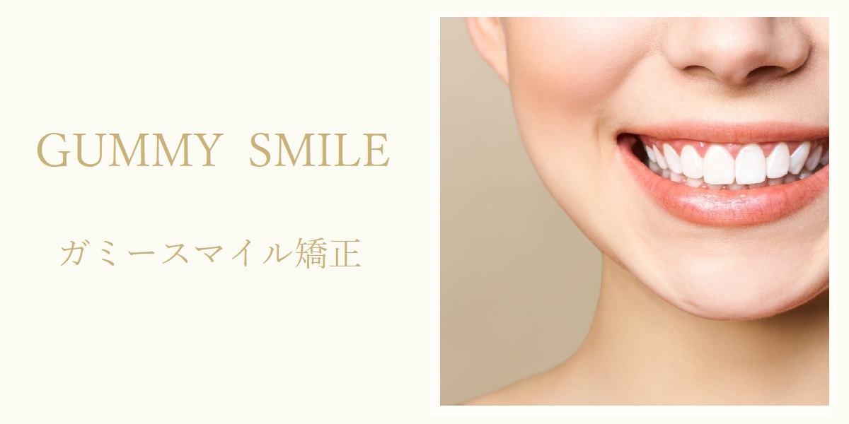 ガミースマイルは上の前歯が下前方に位置していることで、上の歯茎が出っ張って見えます。