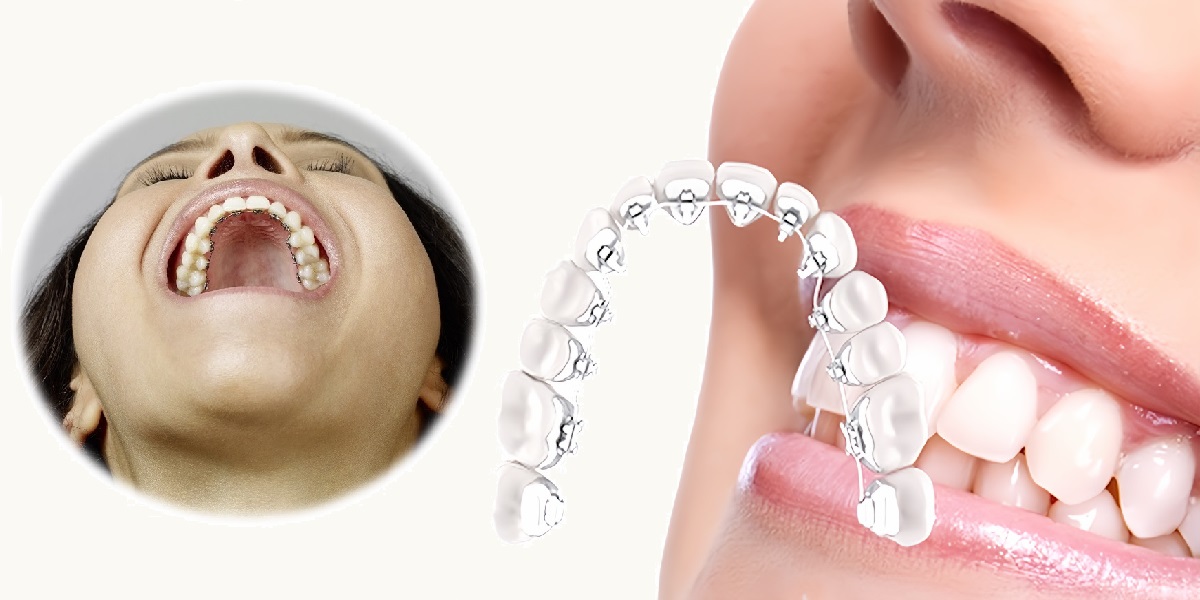 上は見えない裏側矯正、下は目立たなくて快適なホワイトの表側の矯正です。