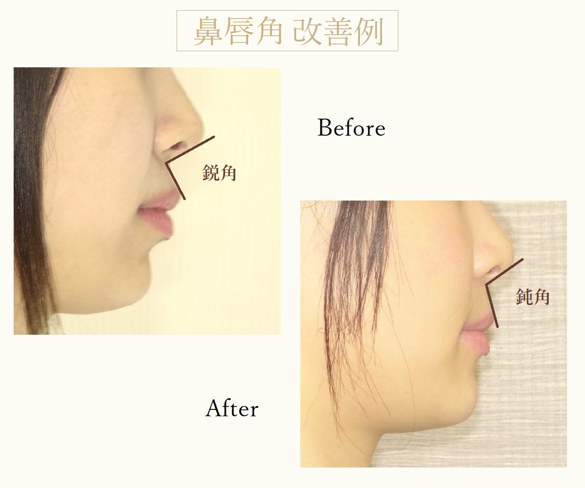 先ほどのEライン改善例の患者様はこのように鼻唇角も改善されています。