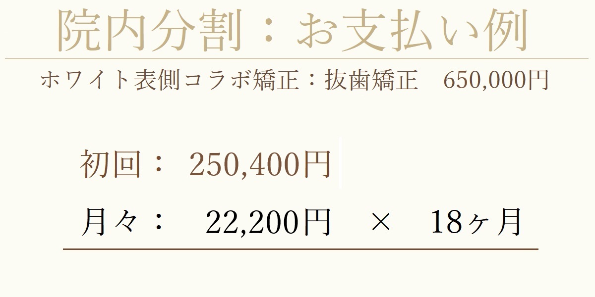 初回に原則として1/2以上の入金がお支払いになりますが、矯正プランによって初回の最低金額がございます。
