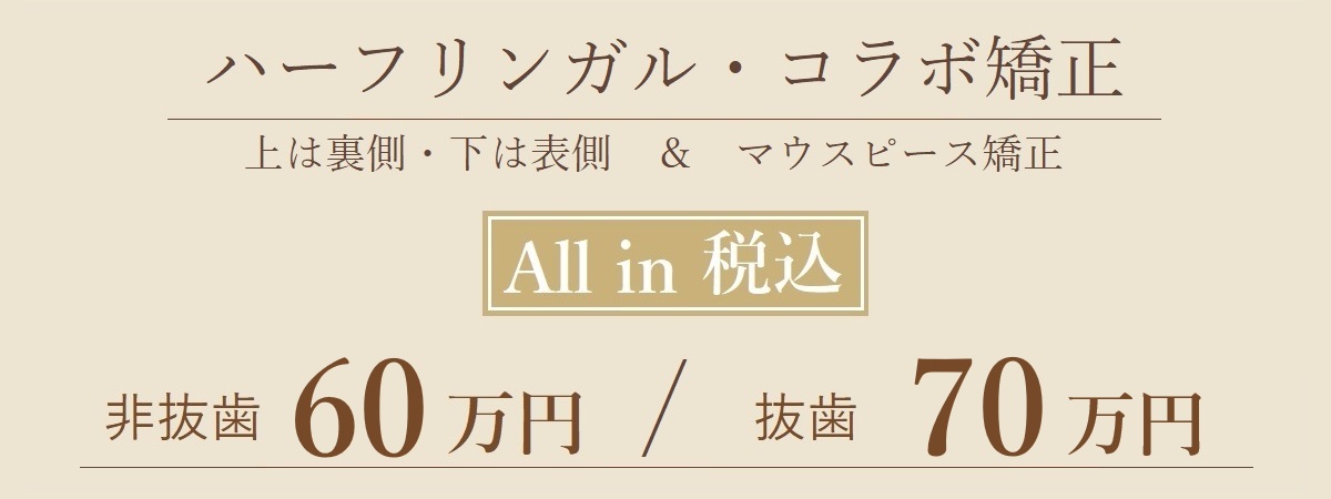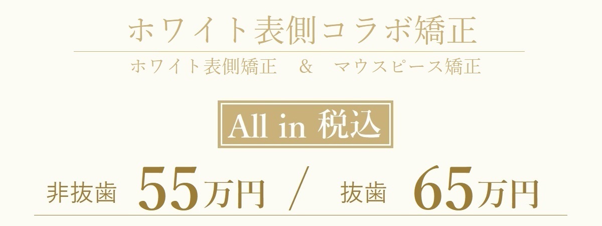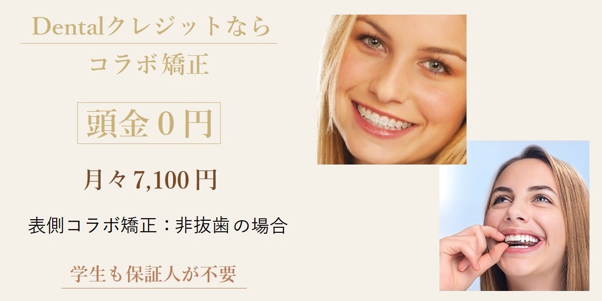 ワイヤ矯正とマウスピース矯正を組合わせた人気のコラボ矯正は、院内分割でも一括払い・Dentalクレジット払いと同一料金になっております。