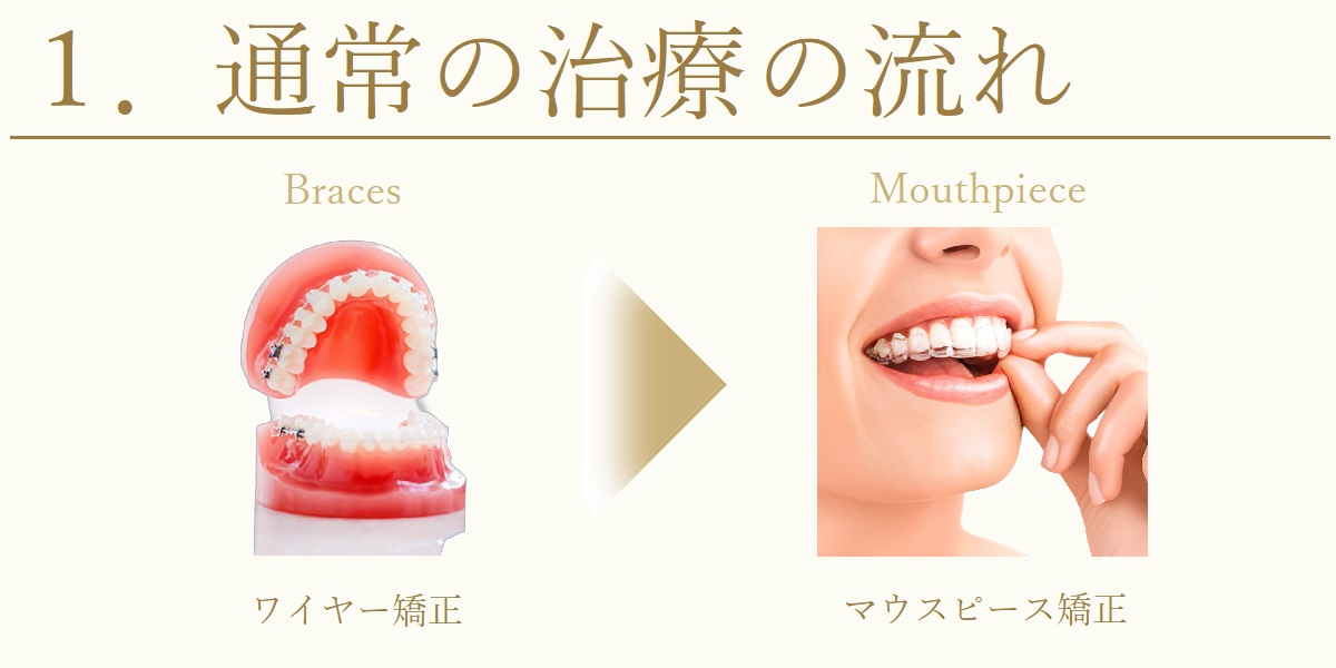 コラボ矯正は通常はワイヤー矯正の後に、マウスピース矯正の順番で治療いたします。