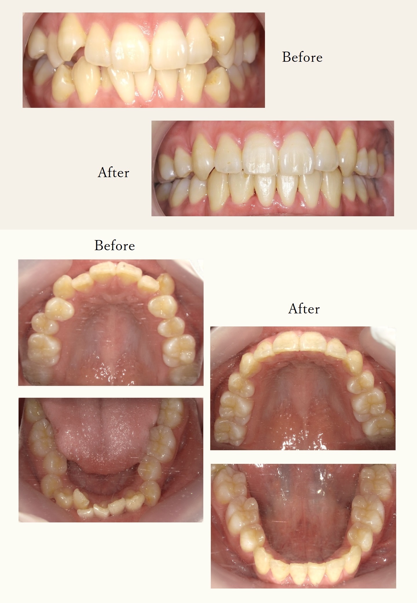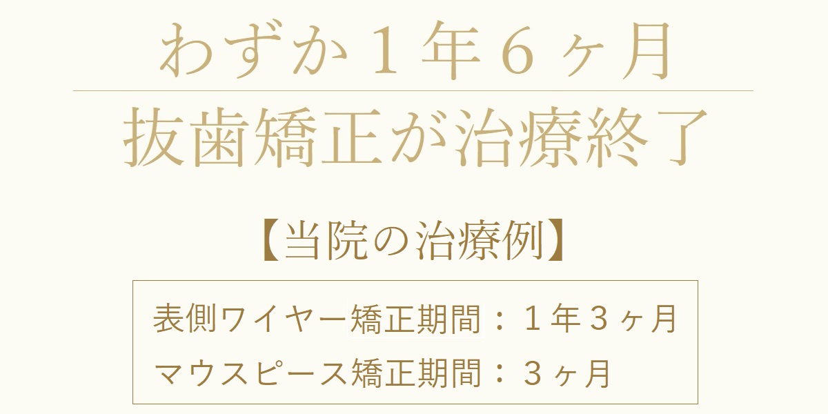 ※この症例は短期間で終了しましたが、通常は抜歯矯正なら更に約1年は治療期間が長くなる傾向がございます。
