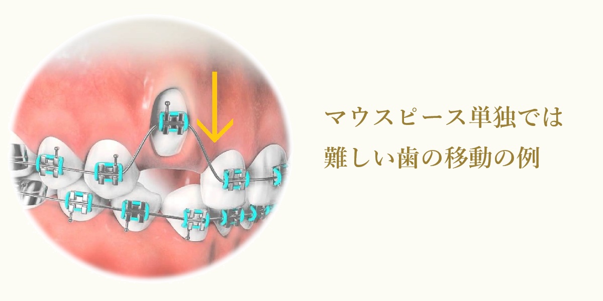 マウスピース矯正単独では無理な歯の移動も、ワイヤー矯正を組合わせるので可能です。