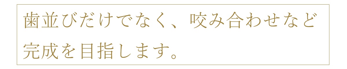 TBDC新宿院では、歯並びだけでなく、上下の正中、前歯と左右の奥歯も均等に噛めるように咬み合わせなど機能面の完成も目指した治療をいたしております。