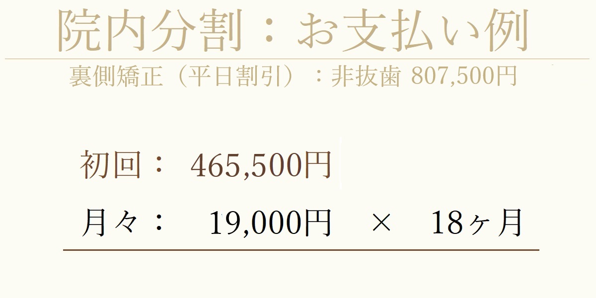 裏側矯正を院内分割の場合は初回45万円以上が必要になります。