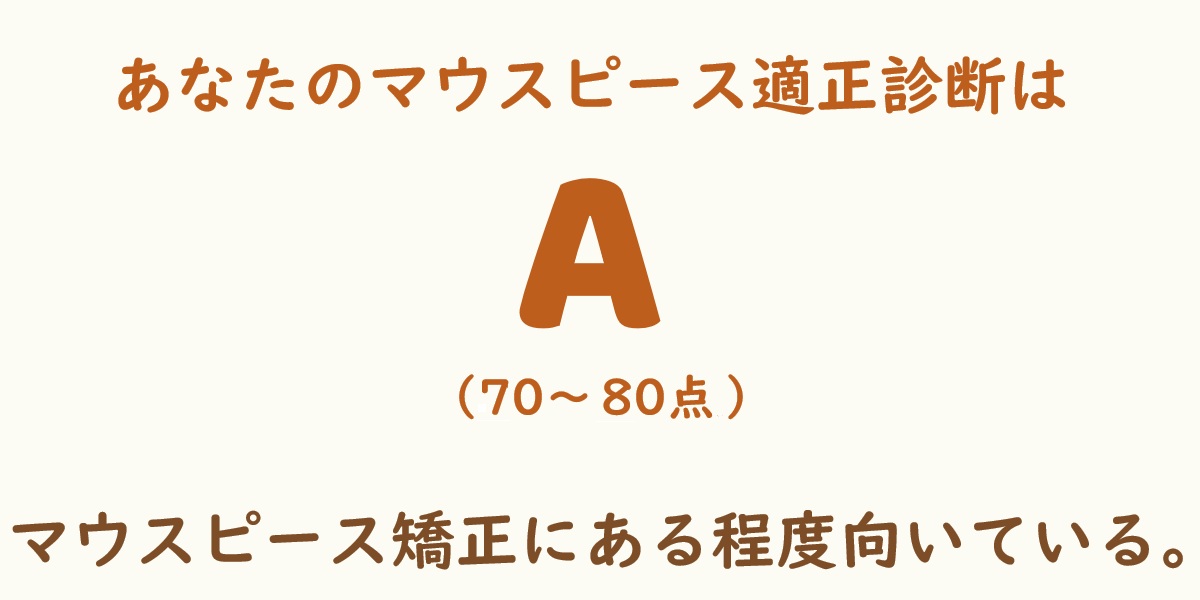 MPTIマウスピース適正診断テストの結果がAのあなたは、マウスピース矯正にある程度向いています。