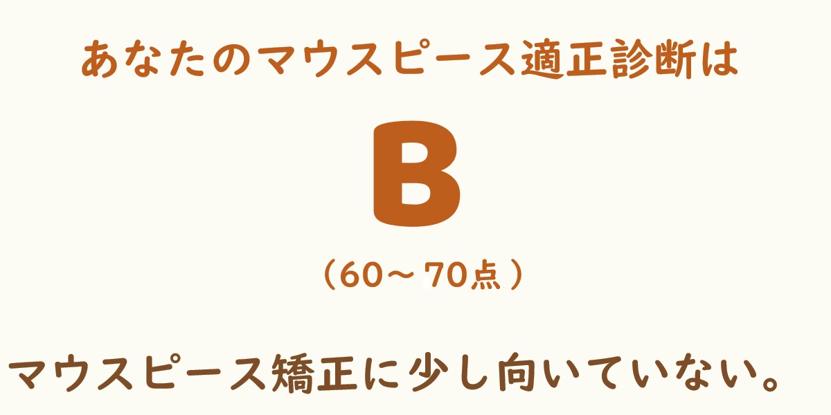 MPTIマウスピース適正診断テストの結果がBのあなたは、マウスピースの矯正に少しリスクがございます。