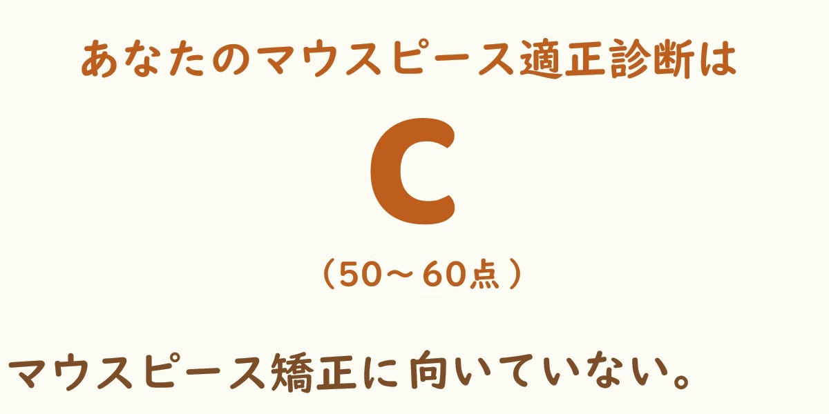 MPTIマウスピース適正診断テストの結果がCのあなたは、マウスピース矯正にリスクがございます。