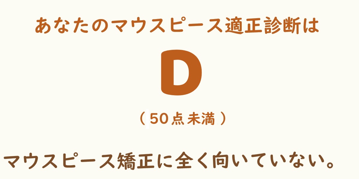 MPTIマウスピース適正診断テストの結果がDのあなたは、マウスピース矯正はリスクが高すぎます。