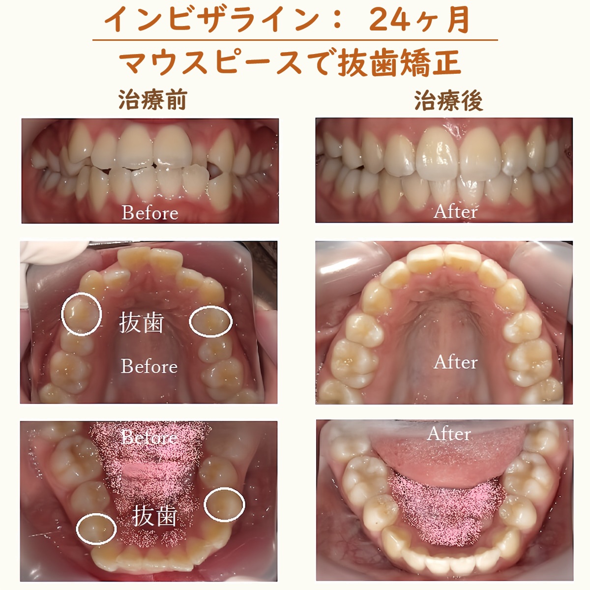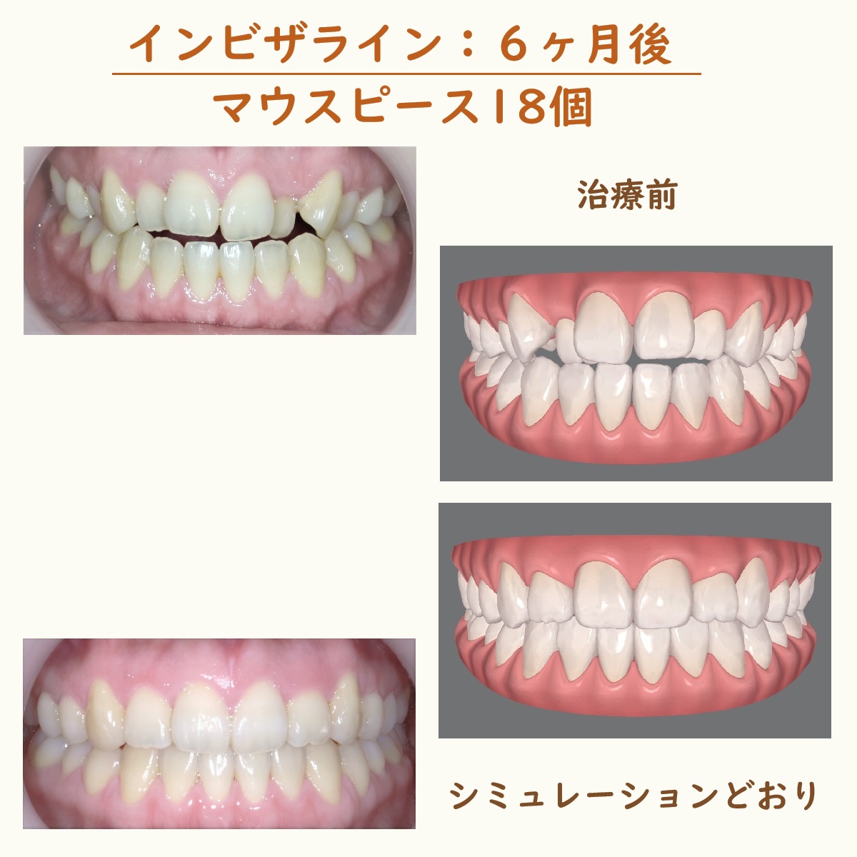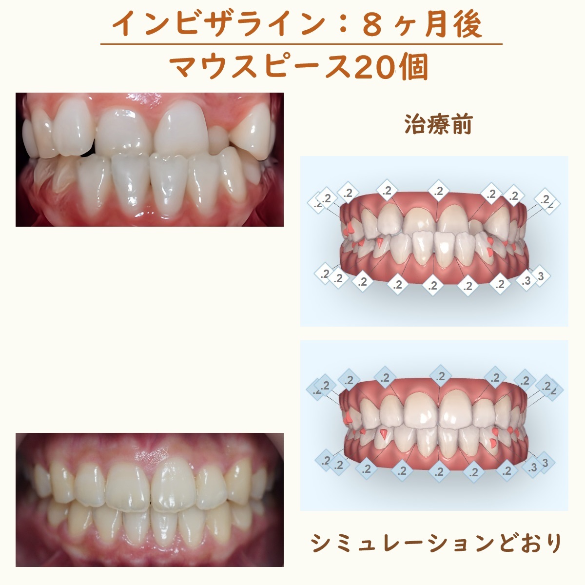 しかし、マウスピースを1日20時間以上と正しく使用すれば、マウスピース矯正は【当院の治療例】のように、大変有効な矯正治療です。